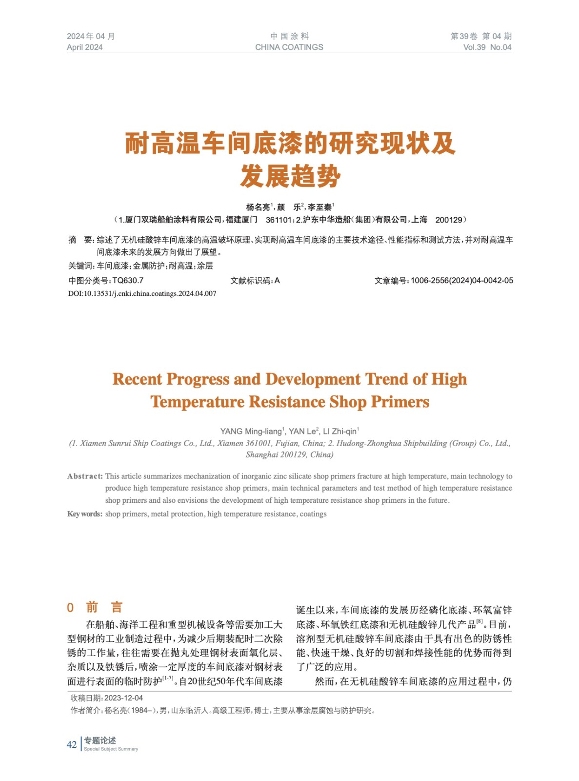 本文系作者@楊名亮,顏 樂,李至秦 授權中國涂料網發表,并經中國涂料網編輯,未經允許不得轉載,如需轉載請聯系chinacoatingnet@vip.163.com