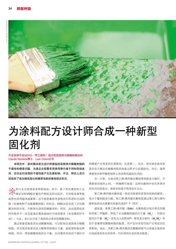 不含鈷和不含MEKO(甲乙酮肟)組分的高固體分醇酸樹脂涂料