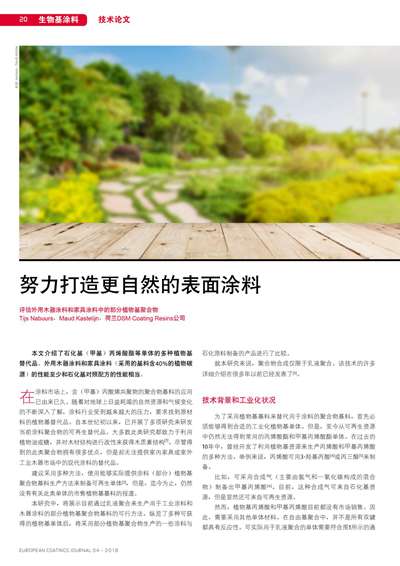 評估外用木器涂料和家具涂料中的部分植物基聚合物