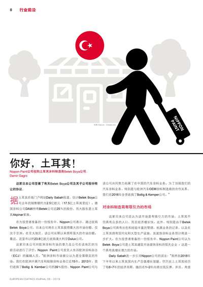 Nippon Paint公司收購(gòu)?fù)炼渫苛现圃焐藼etek Boya公司
