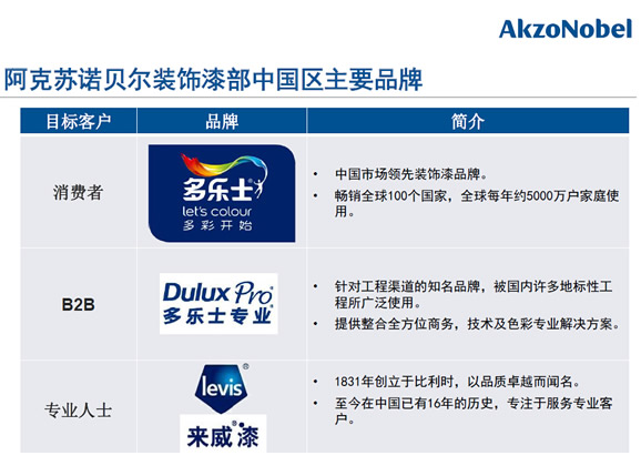 阿克蘇諾貝爾裝飾漆部中國區(qū)主要品牌