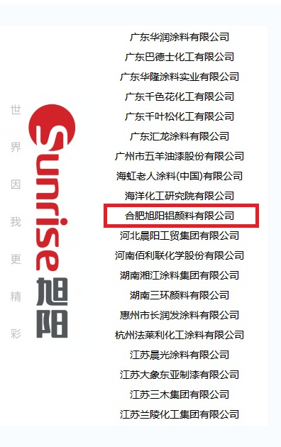 本次旭陽榮獲“中國涂料工業(yè)百年百強(qiáng)企業(yè)” 稱號,是上下游合作伙伴們一直以來對旭陽關(guān)心和支持的結(jié)果!旭陽人將會借此契機(jī),繼續(xù)努力拼搏,為客戶提供質(zhì)優(yōu)價廉的鋁銀漿系列產(chǎn)品,為中國的涂料事業(yè)貢獻(xiàn)力量,打造中國鋁顏料的民族品牌!