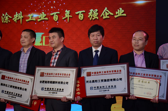 圖:晨陽水漆榮獲中國涂料工業(yè)百年百強(qiáng)企業(yè)獎(jiǎng)