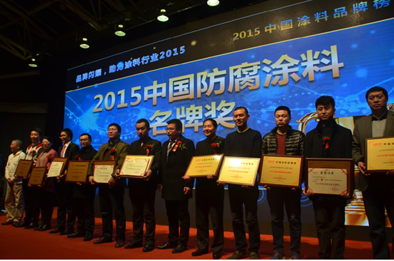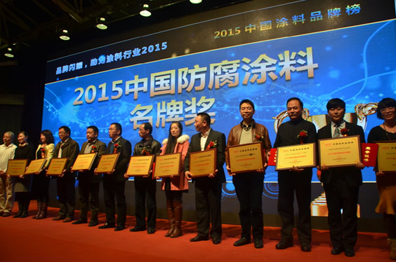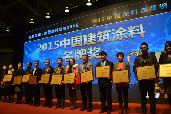 2015年12月18日晚,在北京舉辦的“2015中國涂料品牌榜頒獎活動”中,“2015中國涂料品牌榜”隆重揭曉。共評出中國建筑涂料名牌獎、中國防腐涂料名牌獎、中國木器涂料名牌獎、中國汽車涂料名牌獎、中國藝術(shù)涂料名牌獎、中國涂料裝備名牌獎、中國涂料顏填料名牌獎、中國涂料原輔材料名牌獎、中國涂料行業(yè)發(fā)展?jié)摿ζ髽I(yè)獎、中國涂料行業(yè)精英獎、中國涂料行業(yè)伯樂獎11類獎項,上榜品牌、企業(yè)及個人348個。