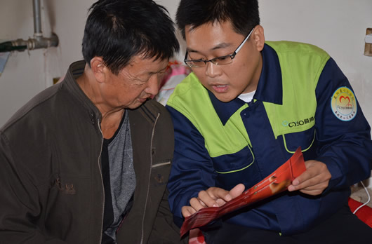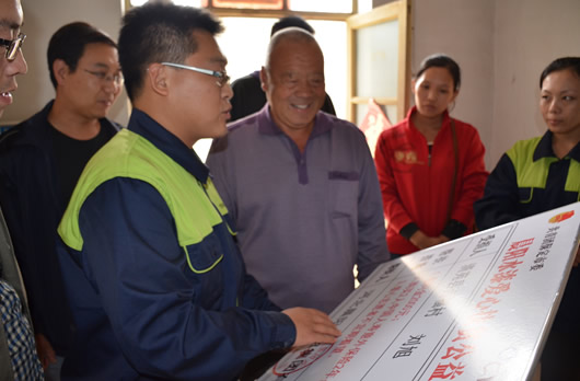 晨陽(yáng)水漆工作人員為滿城小賽村路得申講解保險(xiǎn)事宜