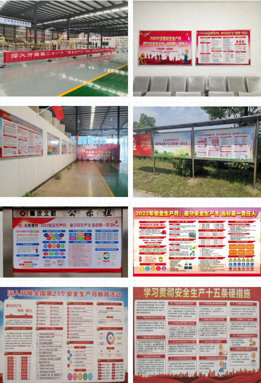 安全生產(chǎn)月期間,各企業(yè)制作了內(nèi)容豐富、設(shè)計(jì)精良的活動(dòng)看板,積極宣貫 “安全生產(chǎn)月”主題及十五條安全生產(chǎn)措施。部分企業(yè)走出工廠、走出北新,與屬地社區(qū)聯(lián)合開(kāi)展安全宣傳咨詢?nèi)栈顒?dòng),通過(guò)主題展覽、現(xiàn)場(chǎng)咨詢、派發(fā)安全宣傳資料等方式開(kāi)展安全宣傳咨詢。