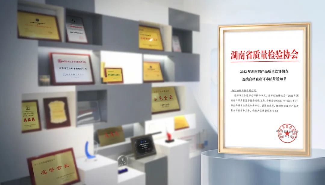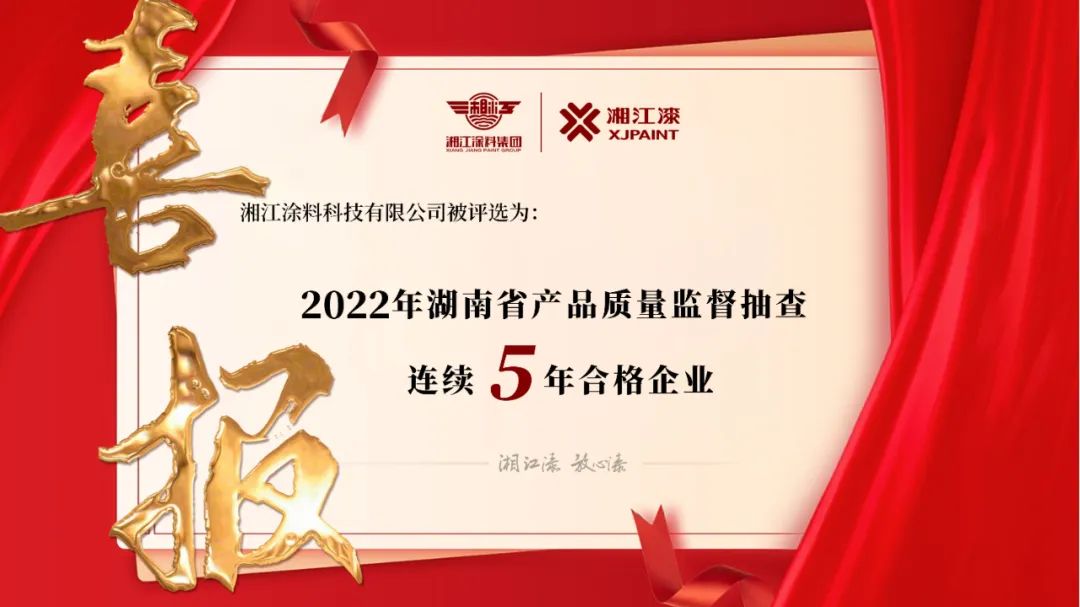 榮譽(yù)|湘江涂料:湖南省產(chǎn)品質(zhì)量監(jiān)督抽查連續(xù)5年合格