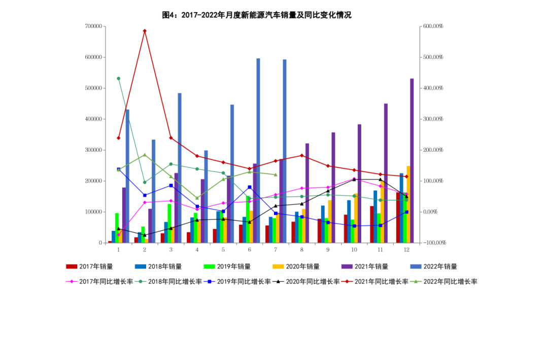 2022年7月,隨著中央穩(wěn)經(jīng)濟(jì)一攬子政策效應(yīng)進(jìn)一步顯現(xiàn),汽車產(chǎn)銷保持快速增長,當(dāng)月汽車產(chǎn)銷分別完成245.5萬輛和242萬輛,同比分別增長31.5%和29.7%。新能源汽車延續(xù)高速增長勢頭,1-7月市場占有率達(dá)到22.1%。