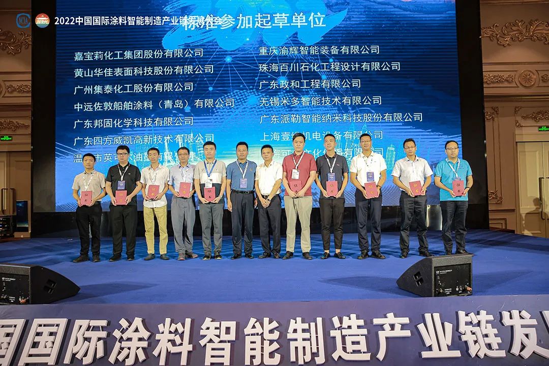 中國涂料工業協會會長孫蓮英,明光市人民政府副市長劉靜,工業和信息化部賽迪研究院產業政策研究所所長董凱、國家智能制造專家委員會委員、上海市智能制造產業協會會長徐洪海,廣東金寶力化工科技裝備股份有限公司,珠海市長陸工業自動控制系統股份有限公司董事長何曉東,江蘇湯姆森智能裝備有限公司總裁助理湯姆,重慶渝輝智能裝備有限公司總經理賈思宇共同啟動“中國涂料行業智能工廠評價”工作。
