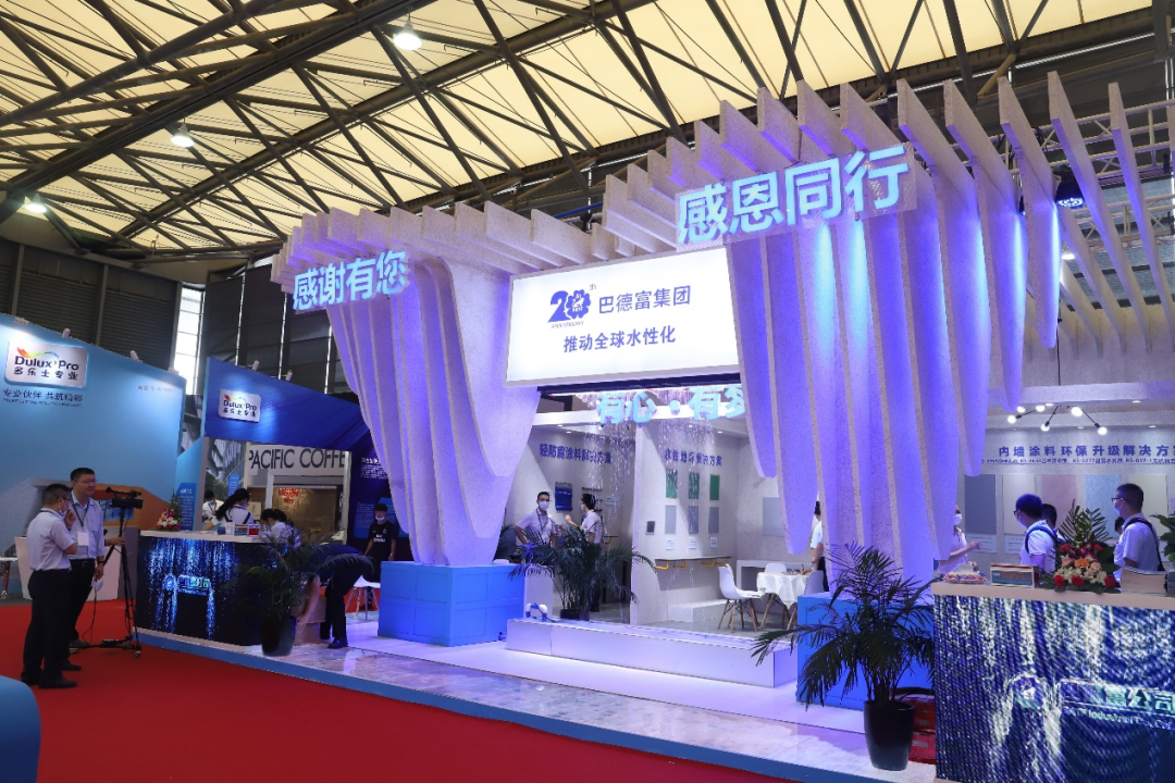 而巴德富被譽為我國建筑乳液第一,此次涂博會也要特別關注一下。2021 年,巴德富銷售收入突破百億元大關,產量超百萬噸。雙百圓夢的巴德富,又開啟了向水性乳液領域世界第一的地位發起沖刺。作為與涂料企業并肩作戰的老朋友,巴德富參展的意義顯得格外與眾不同,巴德富的展廳也是人心所向的地方。