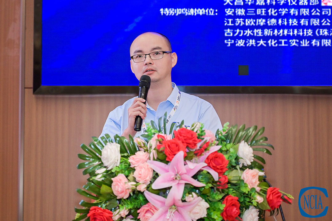浙江納美新材料股份有限公司研發中心總經理何貴平:介紹了納美的業務領域包括墨水、UV功能材料、水性色漿、UV色漿、水性納米材料。