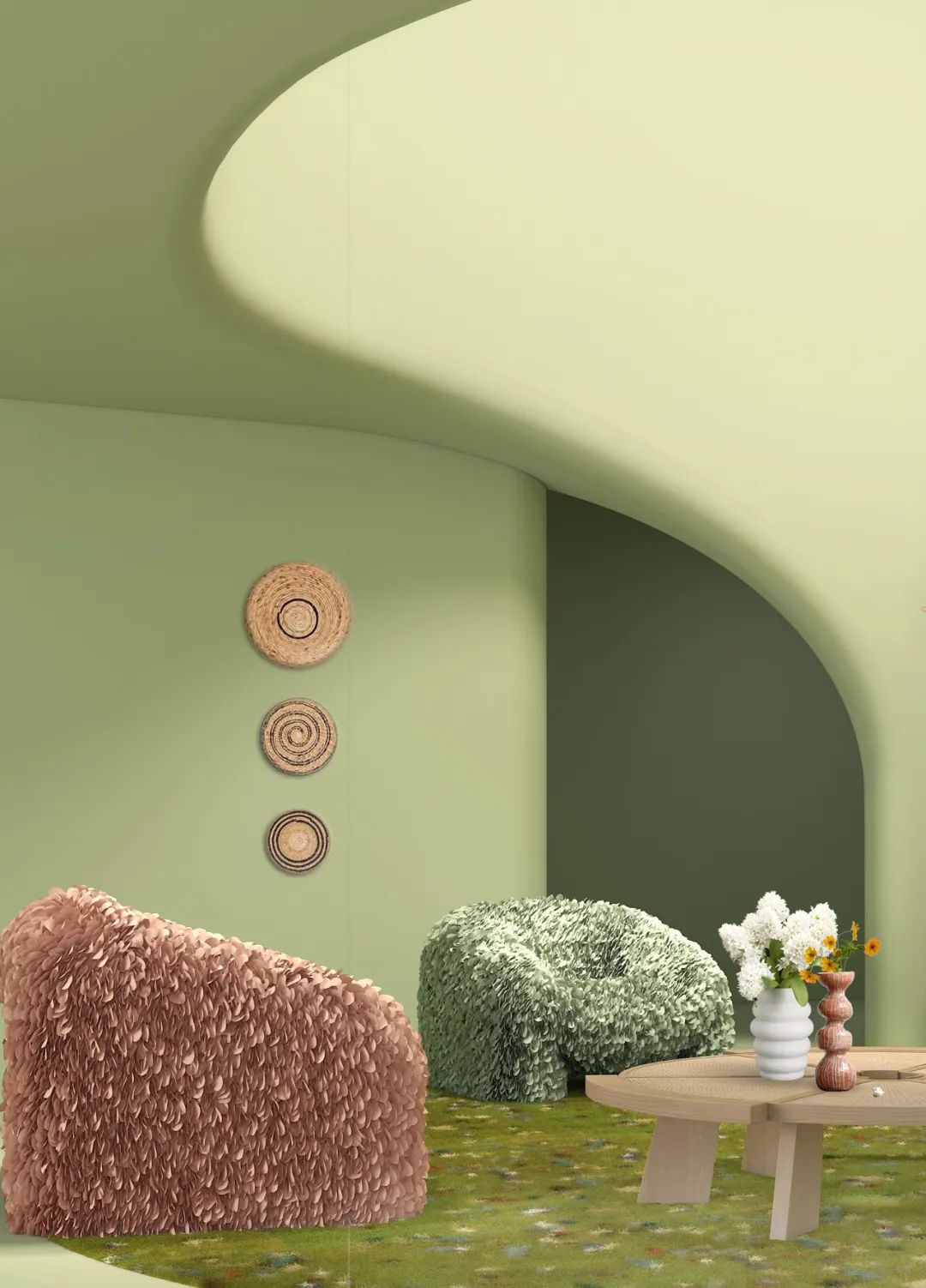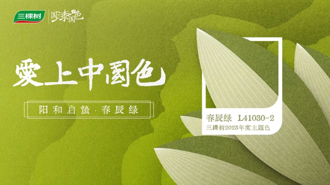 當(dāng)下,隨著民族復(fù)興進(jìn)程加快與文化自信不斷提升,回溯、探索與展望中國色彩的風(fēng)格及其應(yīng)用具有重要意義。三棵樹以”中國漆,千年色”為自然健康家居空間涂裝的內(nèi)涵,以中國色彩的靈感及理念傳遞對美好生活的理解,正如三棵樹2023年色彩主題“陽和啟蟄”及主題色“春辰綠”,源于對自然的尊崇,對未來的希望。