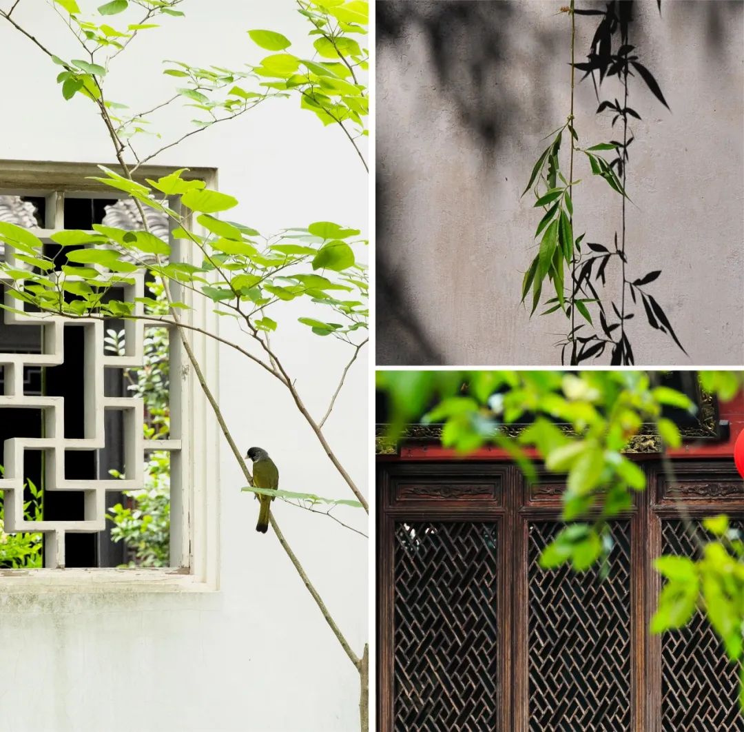 風(fēng)和日麗春日里,自有清雅恬適之樂。春江水暖中,花紅柳綠間,青磚黛瓦所營造的大片留白,形成一幅“小橋流水柳生煙,古渡橫舟杏雨天”的桃源畫卷。絢爛的金色、翠綠、藍(lán)色與紅色,交織出繁麗之中的純凈溫情。