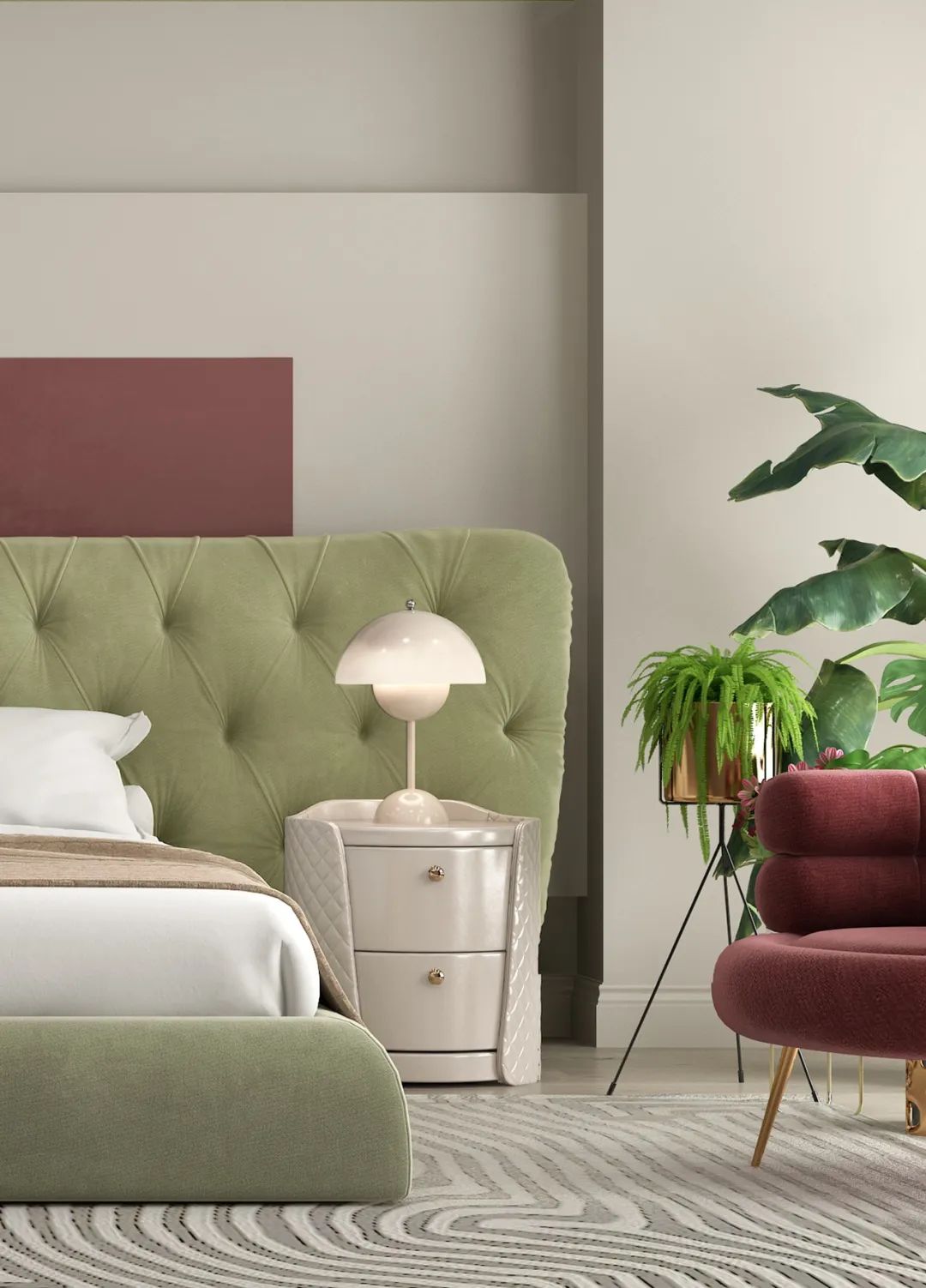 柔和的米白色基調(diào)之上,春辰綠與深紅色形成微妙、適度的色彩對比關(guān)系,色塊間的冷暖、明暗穿插組合,豐富了空間視覺層次,結(jié)合精致的裝飾元素,塑造優(yōu)雅復(fù)古的高級感。