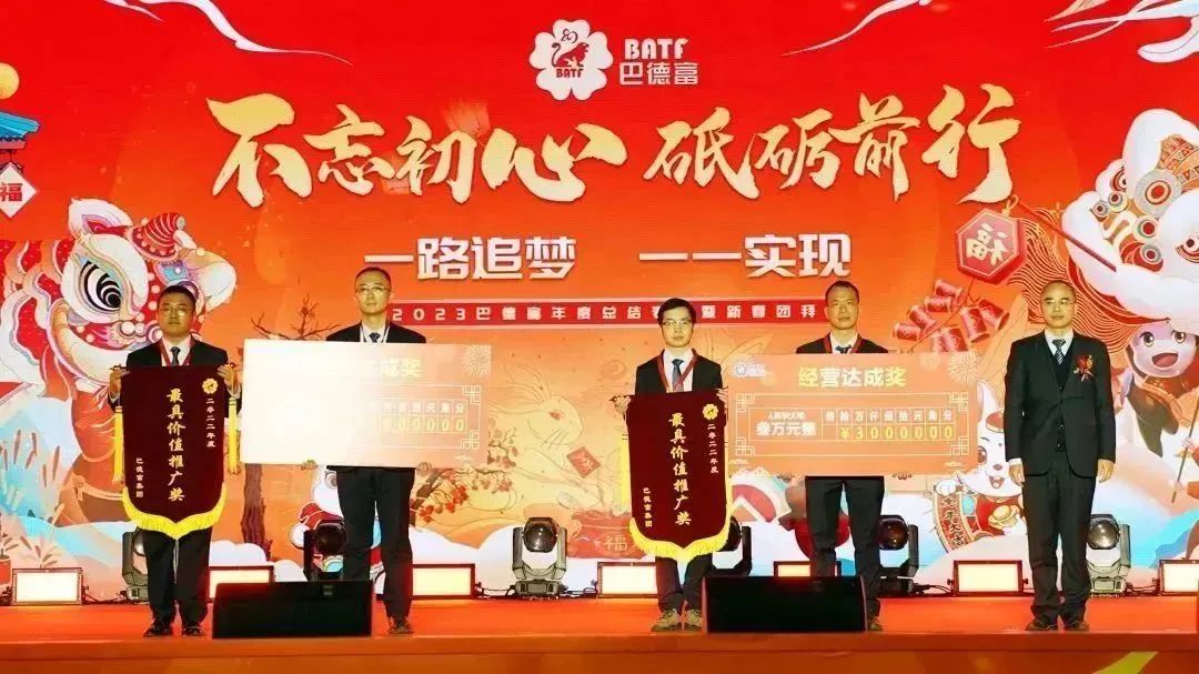 1月14日,巴德富集團舉行了主題為“不忘初心·砥礪前行”的2022年度總結表彰暨2023年新春團拜會。本次團拜會采用“1個主會場+8個分會場”的形式,進行線上同步云直播,全體巴德富人與合作伙伴共同回顧2022年巴德富的奮斗歷程,展望新年發展藍圖。