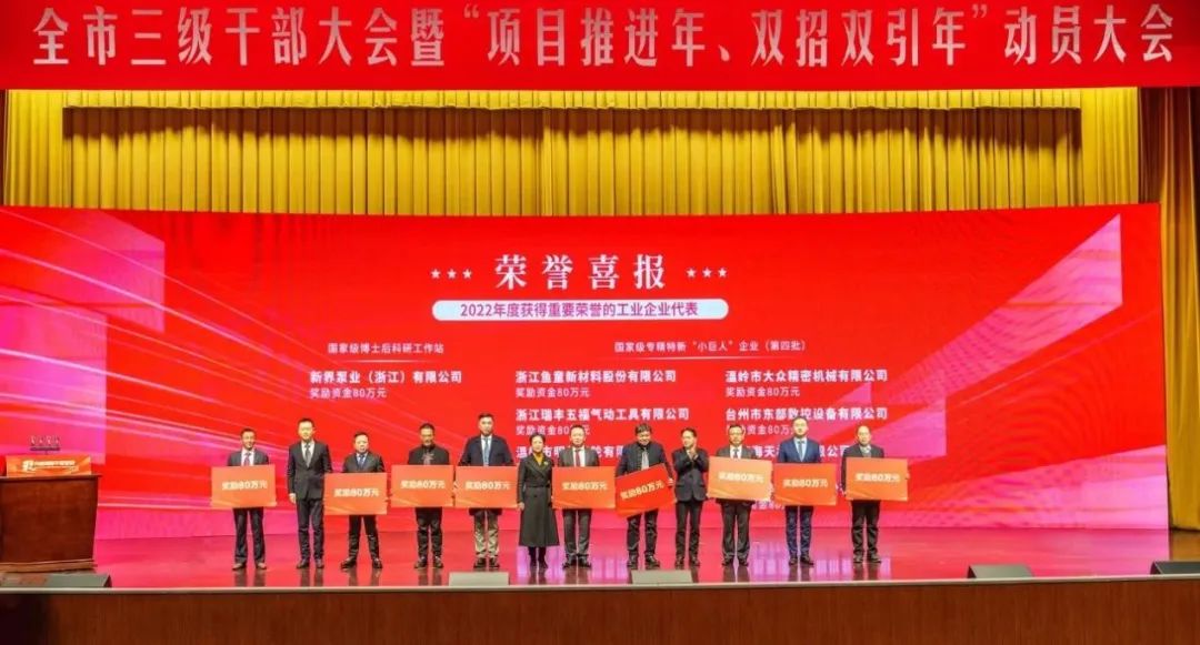 1月29日,溫嶺市三級干部大會暨“項目推進年、雙招雙引年”動員大會在溫召開。會議通報了2022年度全市工業企業二十強、民營企業納稅二十強、“干最好、當標桿、爭第一”先進集體和個人等,魚童因榮膺國家級專精特新“小巨人”企業而受到了表彰,同時也再次入圍“2022年度溫嶺市重點工業企業。
