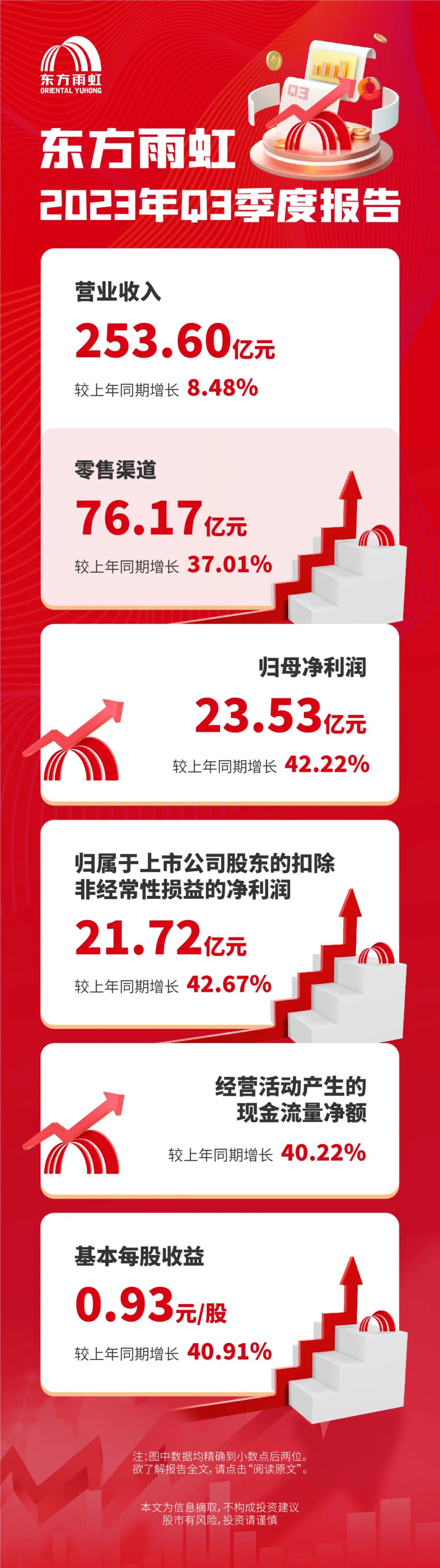 財報|東方雨虹公布2023年三季報:歸母凈利潤同比增長42.22%