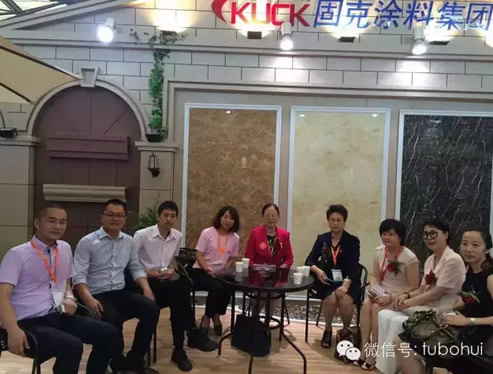 中國(guó)涂料工業(yè)協(xié)會(huì)會(huì)長(zhǎng)孫蓮英女士(中)蒞臨固克展位