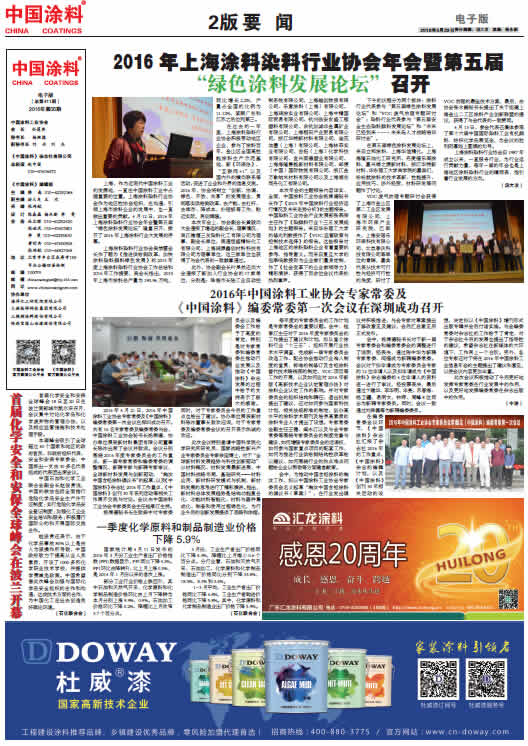 2016年上海涂料染料行業協會年會暨第五屆 “綠色涂料發展論壇”召開