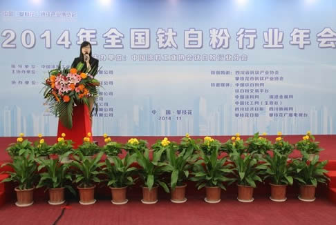 在中國涂料工業協會鈦白粉行業分會郭欣榮秘書長的主持下開始。攀枝花市人民政府常務副市長于會文首先代表東道主攀枝花市向大會致開幕辭,中國涂料工業協會秘書長楊淵德代表協會致辭。