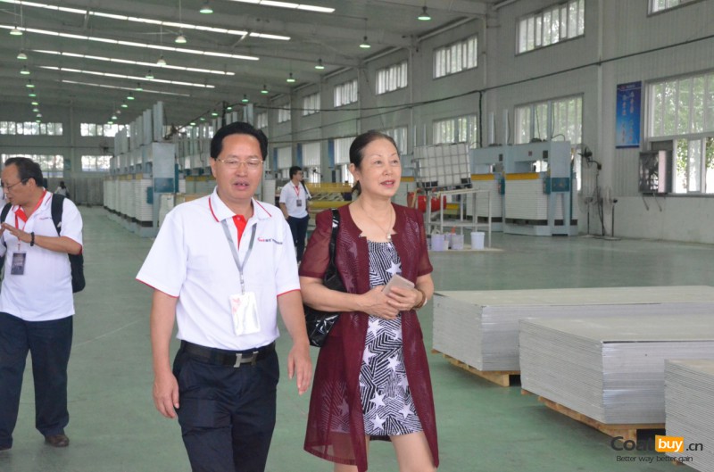 嘉賓們抵達(dá)固克(天津)公司后,首先參觀了整個生產(chǎn)基地。目前,天津基地是國內(nèi)最大的保溫一體板生產(chǎn)企業(yè),建有天工石生產(chǎn)車間、保溫材料車間、涂料車間、研發(fā)中心、實驗室等系列配套設(shè)施。